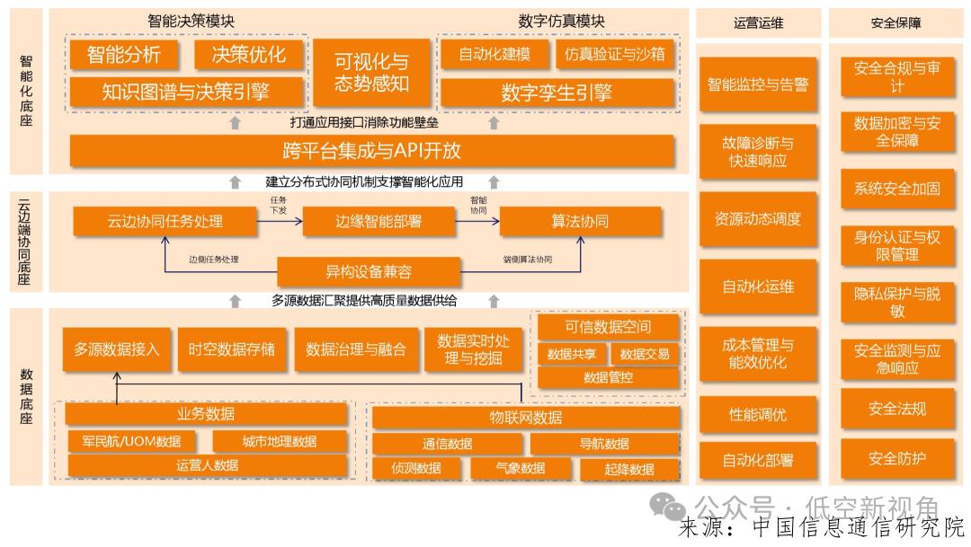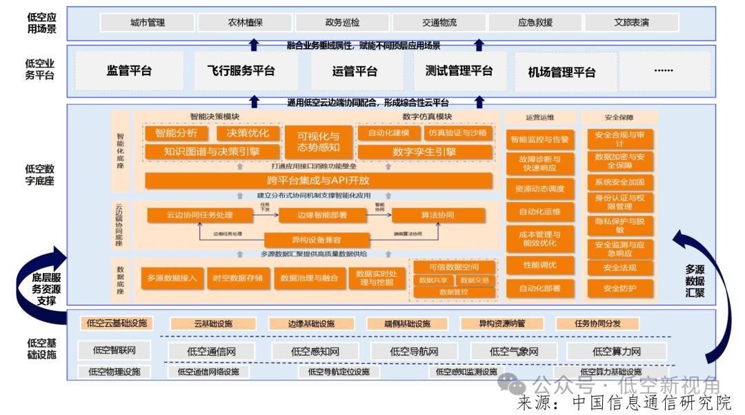 构建低空数字底座的 “认知 - 实践 - 演进” 三层框架,通过解构其 “云 - 边 - 端” 协同架构的技术本质,揭示数字底座如何作为低空数据的 “中央处理器”,将离散的飞行器、空域单元、应用场景转化为可编程的数字资产。这些研究成果不仅为监管部门制定低空融合飞行规则提供决策依据,更帮助运营商精准测算基础设施投资回报周期,最终推动形成政府规范引导、企业创新主导、学术持续支撑的良性发展生态。