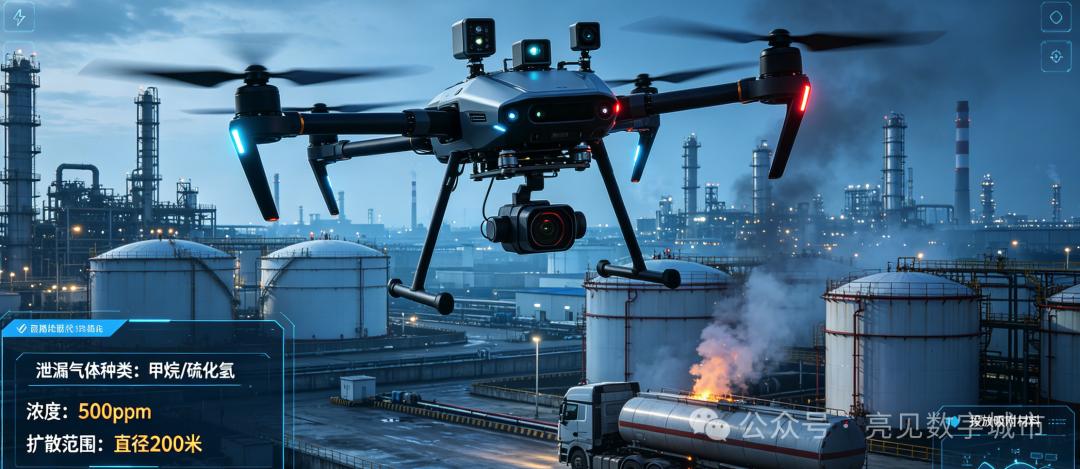 发展趋势:AI 算法赋能气体泄漏智能识别,自动分析气体种类、浓度变化趋势,预测扩散路径;同时开发无人化处置系统,通过无人机投放机器人进行泄漏点封堵,实现 "零人员接触" 处置。