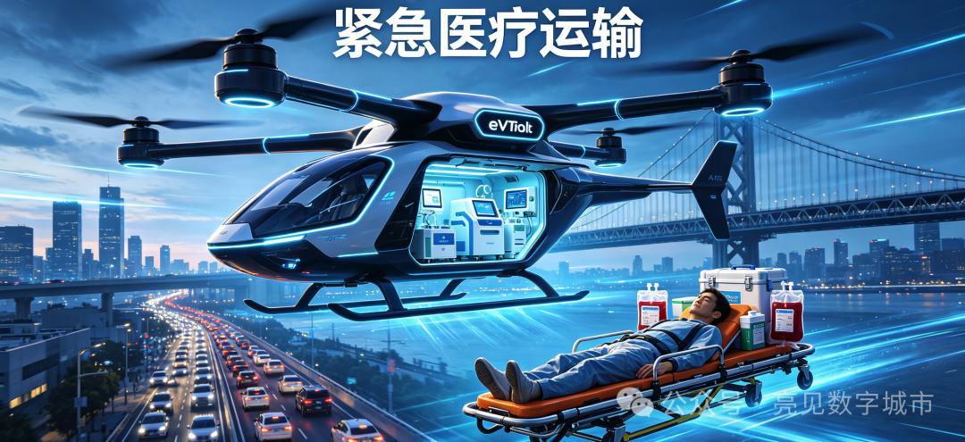 典型案例:江苏南京市构建低空紧急血液运输通道,无人机在 30 分钟内完成跨城市血液运输,保障了危重病人的手术需求。某山区突发疾病,eVTOL 飞行器在 20 分钟内将病人转运至最近医院,比传统救护车节省 1 小时时间,成功挽救了病人生命。