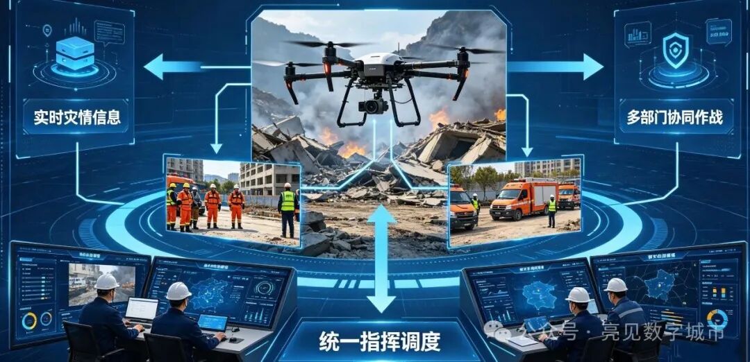 2. 系统化集成:构建 "空天地一体化" 应急救援体系,整合无人机、卫星、地面机器人、指挥中心等资源,实现多维度、全方位应急响应