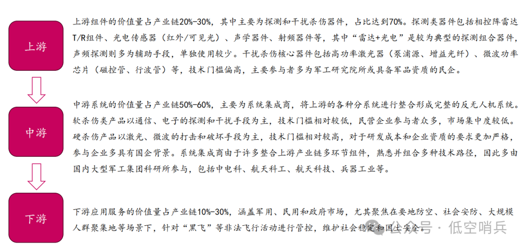 反无人机产业链结构清晰,上下游协同特征明显。